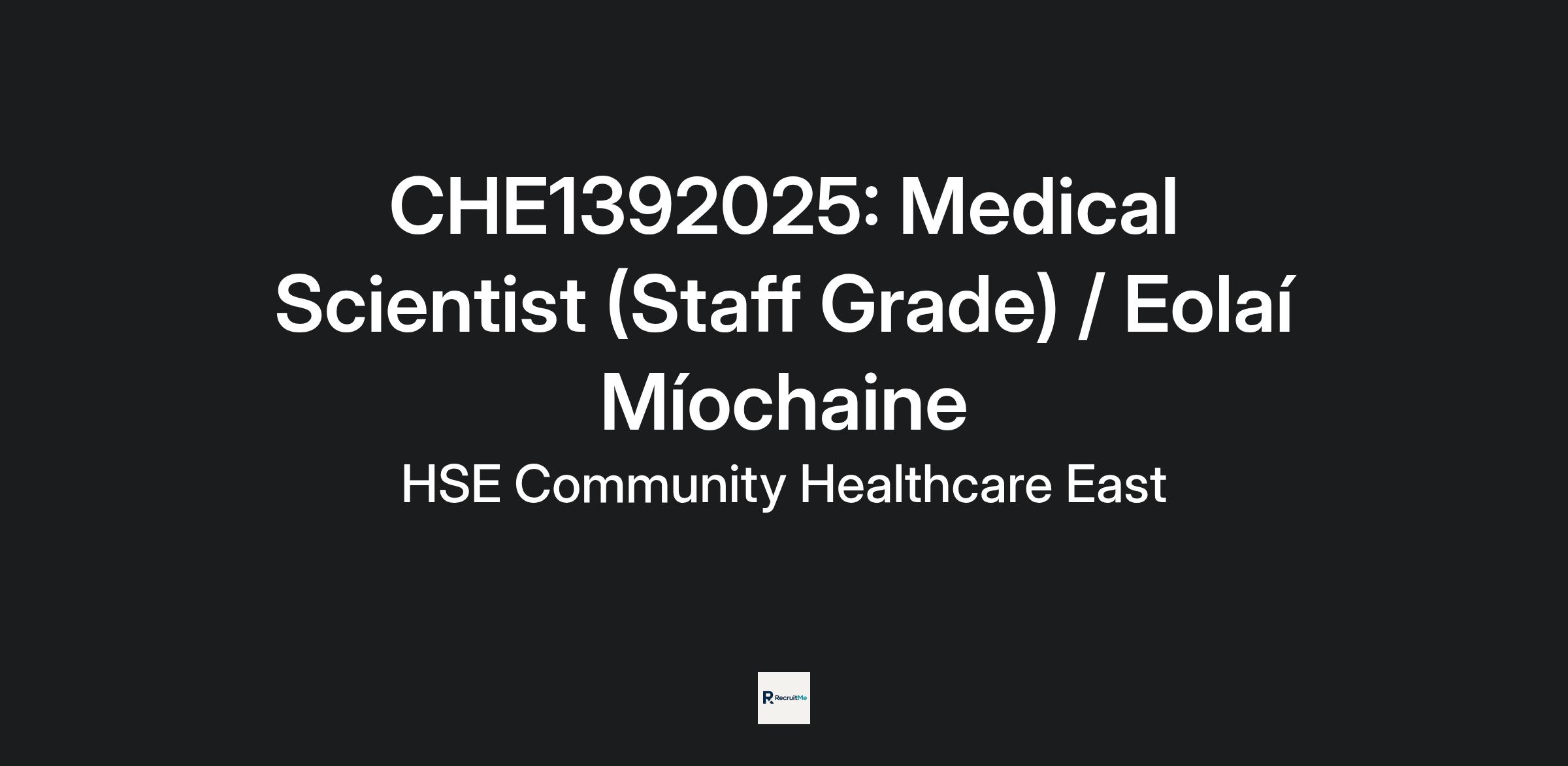 A panel may be formed as a result of this campaign for Medical Scientist (Staff Grade) IHA Dublin South & Wicklowfrom which current and future, permanent and specified purpose vacancies of full or part-time duration may be filled.