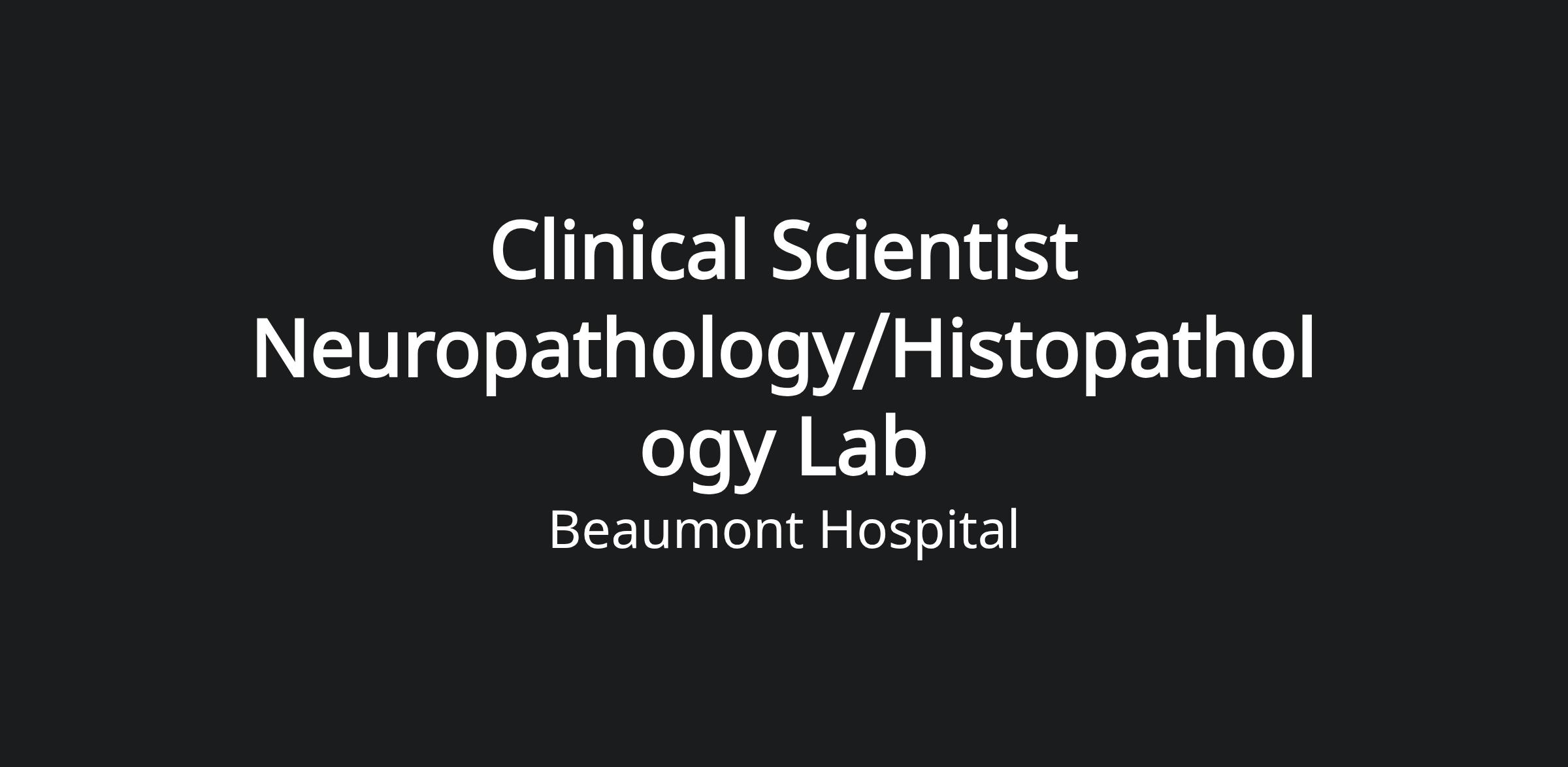 Post Title: | Clinical Scientist Neuropathology/Histopathology Lab |