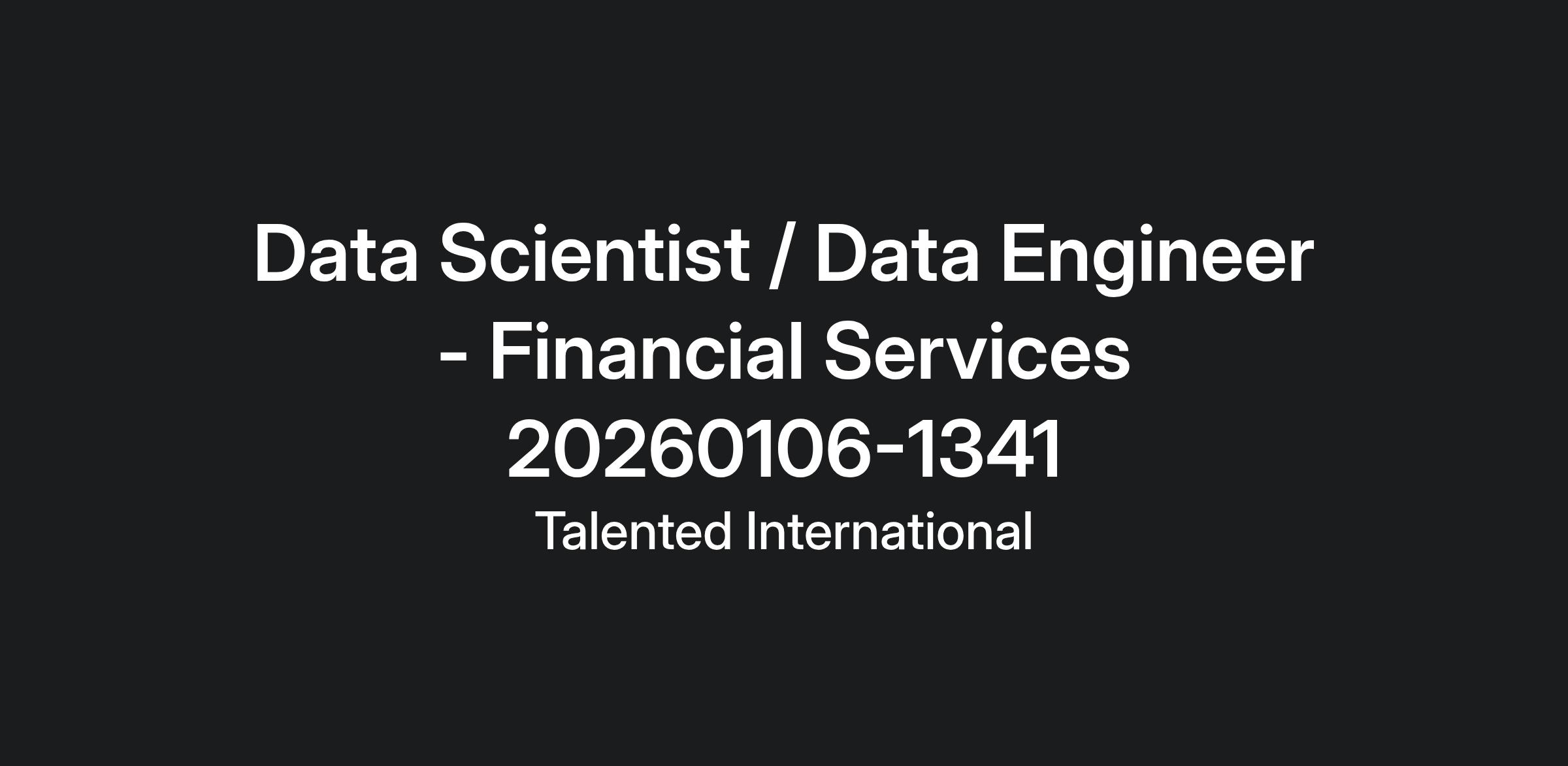 Data Scientist / Data Engineer - Financial Services Organization