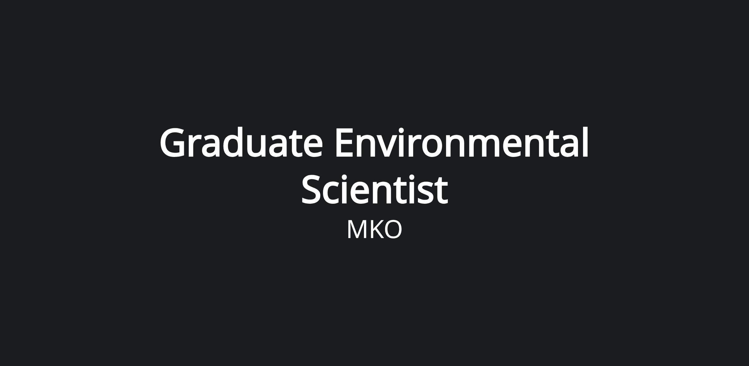 At MKO, our vision is: To expand our reach and impact to help solve the defining environmental and societal challenges of our time. As a Graduate Environmental Scientist, your work will be central to achieving this vision.