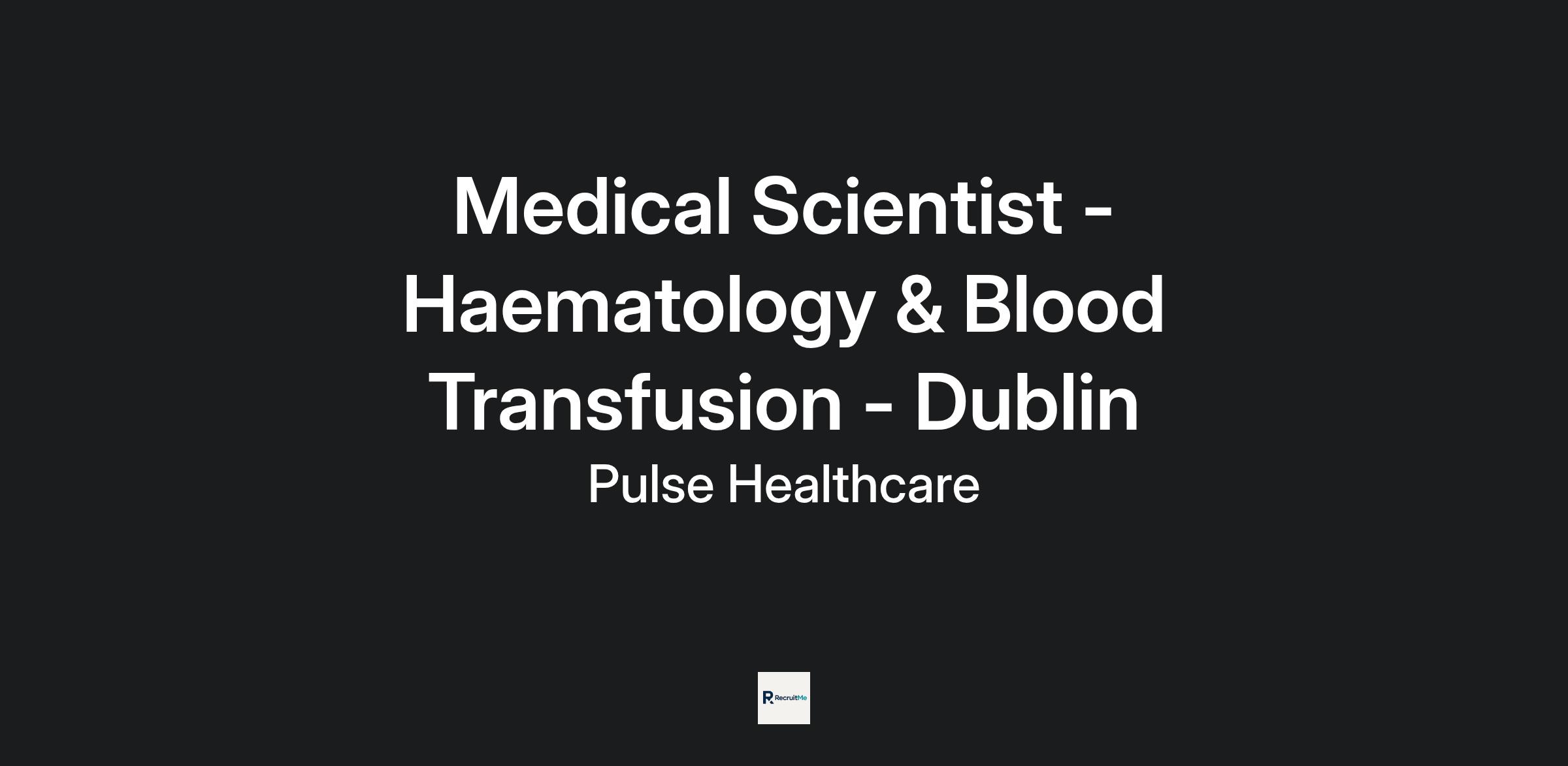Job Title: Medical Scientist – Haematology & Blood Transfusion