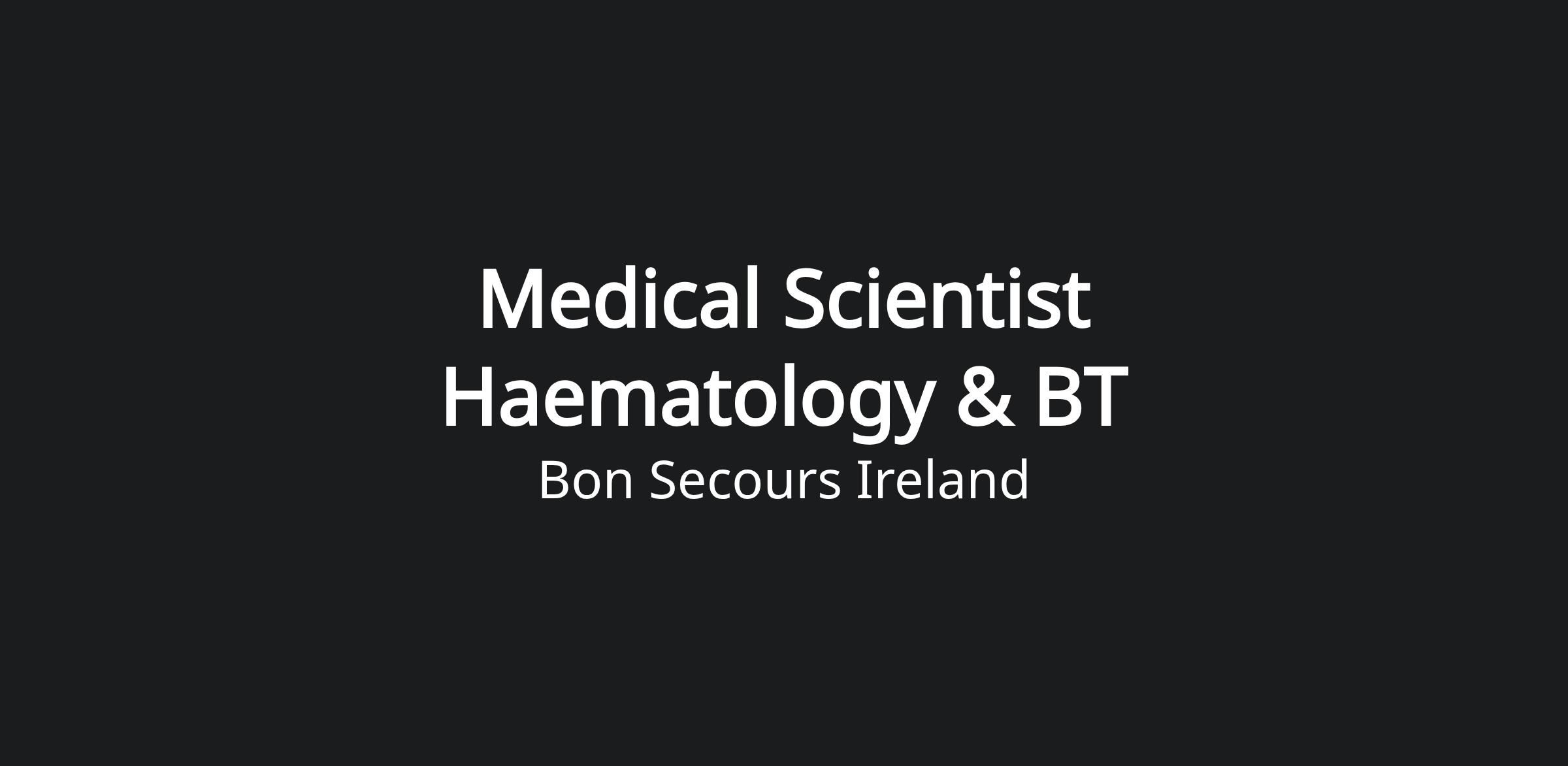 Job Title: Basic Grade Medical Scientist (Assigned to Haematology and Blood Transfusion).