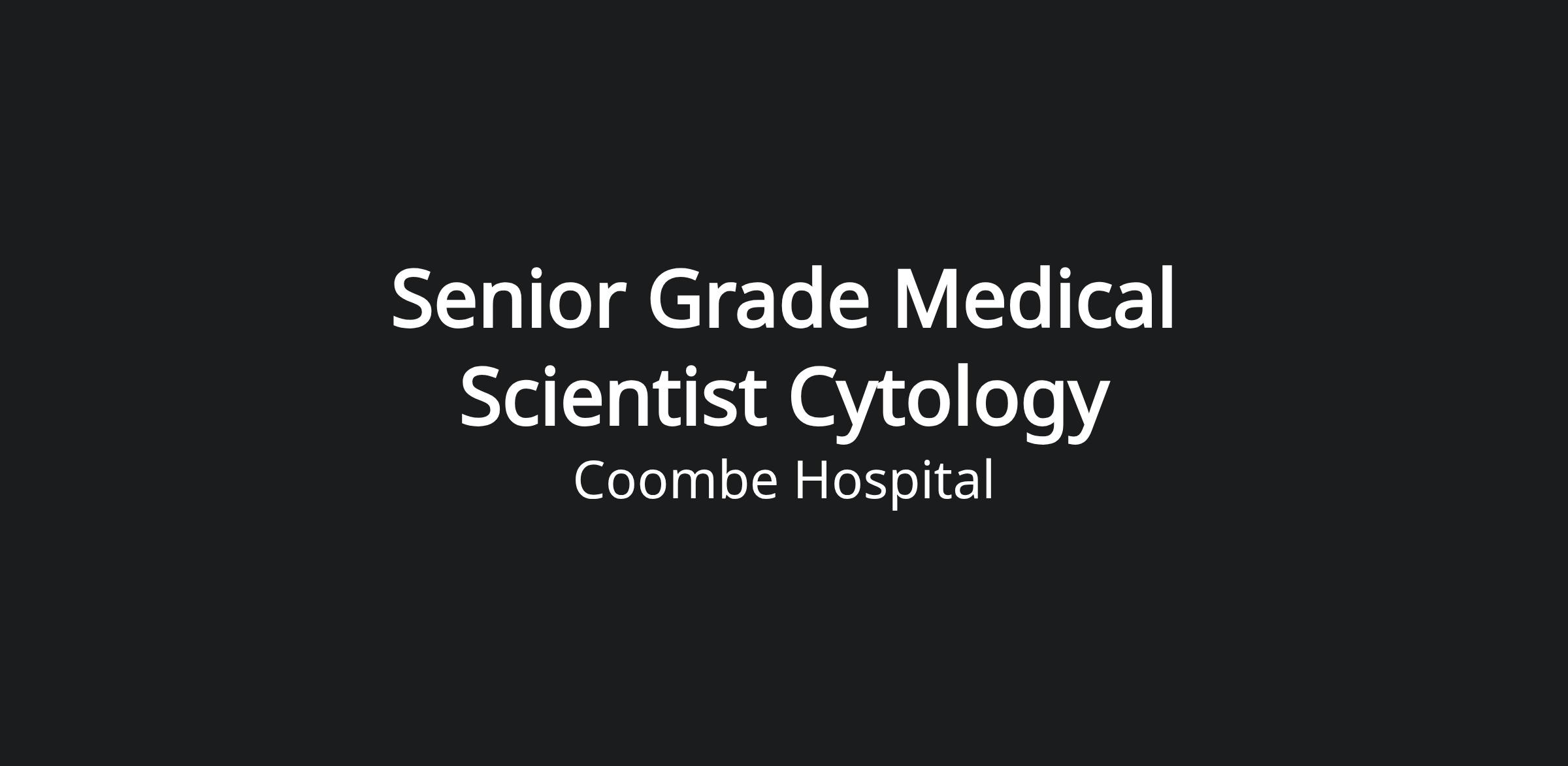 · Senior Medical Scientist Cytology- Permanent Full-Time 1.0WTE