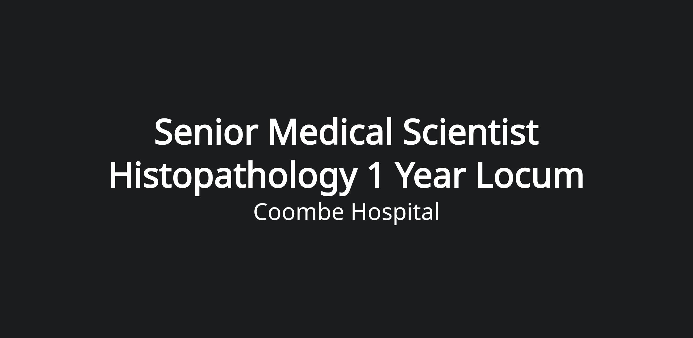 · Senior Medical Scientist Histopathology- Locum 1 Fixed Term 1WTE
